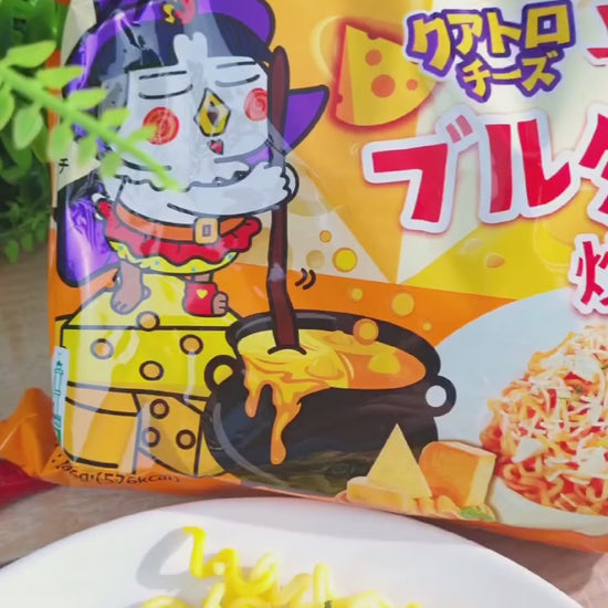Velkjent buldak nudler med 4 forkjellige oster, Mozzarella, Cheddar, Gouda og Camembert.