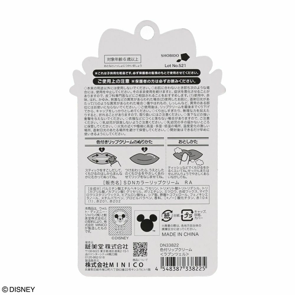 En søt og fargerik lip cream med motiv av Rapunzel som gir både pleie og en lett fargetone til leppene.
