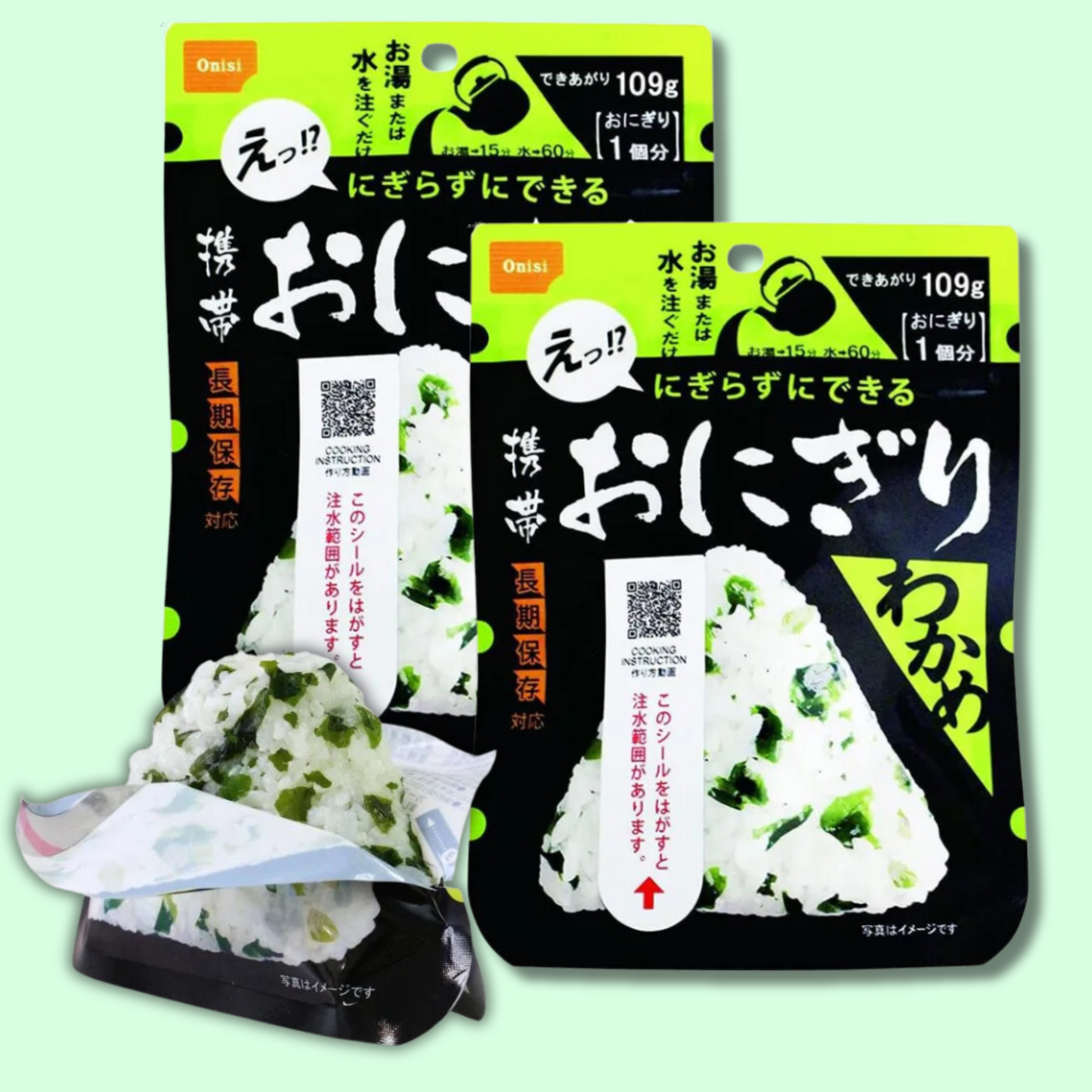 Kompakt og bærbar pose med ris og wakame sjøgress som du kan lage "Onigiri" on a go!