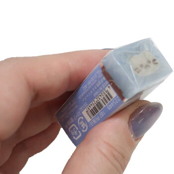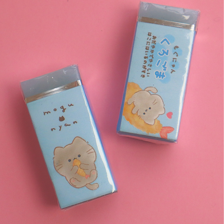 En viskelær med en superkawaii grå katt som holder en ebihurai 🐱🍤